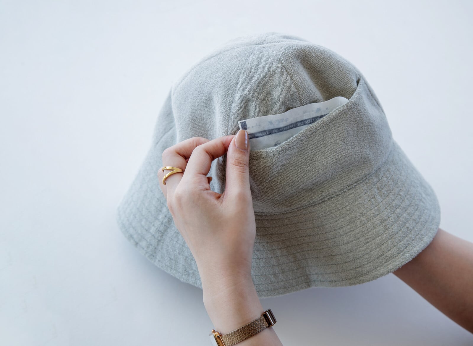 どんなシーン、コーディネートにも合わせやすいシンプルなバケットハット。リバーシブル仕様になっており、雨や水に強い撥水面と汗や熱を吸い取ってくれるパイル面、お好みと用途に合わせて使い分けできます。