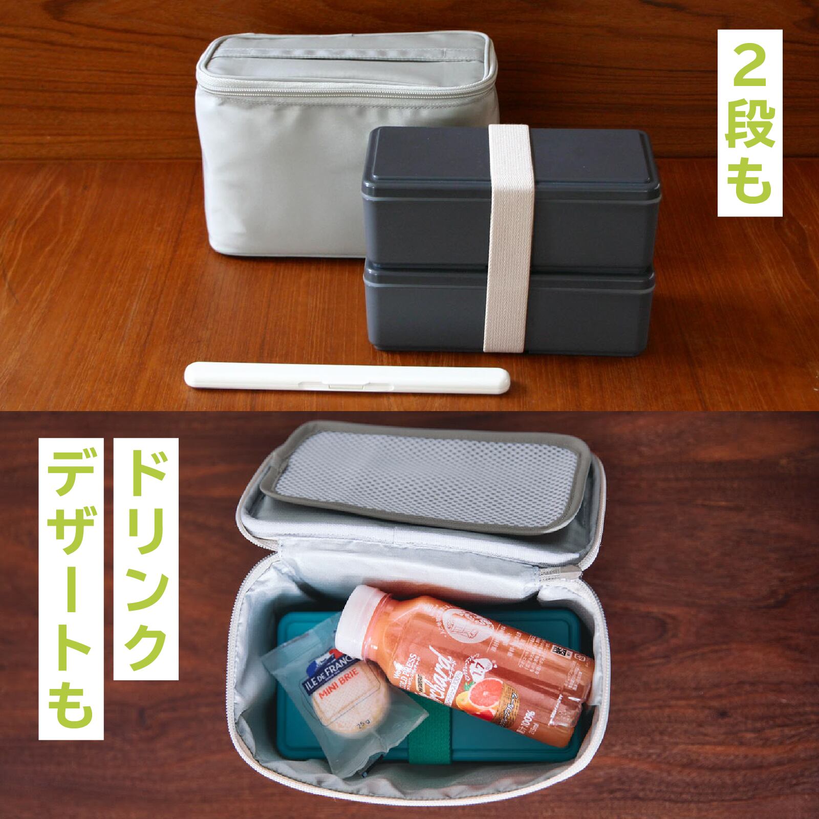 2段の大きなお弁当を入れるもよし、1段のお弁当の上にオニギリやデザート、ドリンクなどを乗せて封をするもよし。たくさん入るので様々な使い方にアレンジできます。