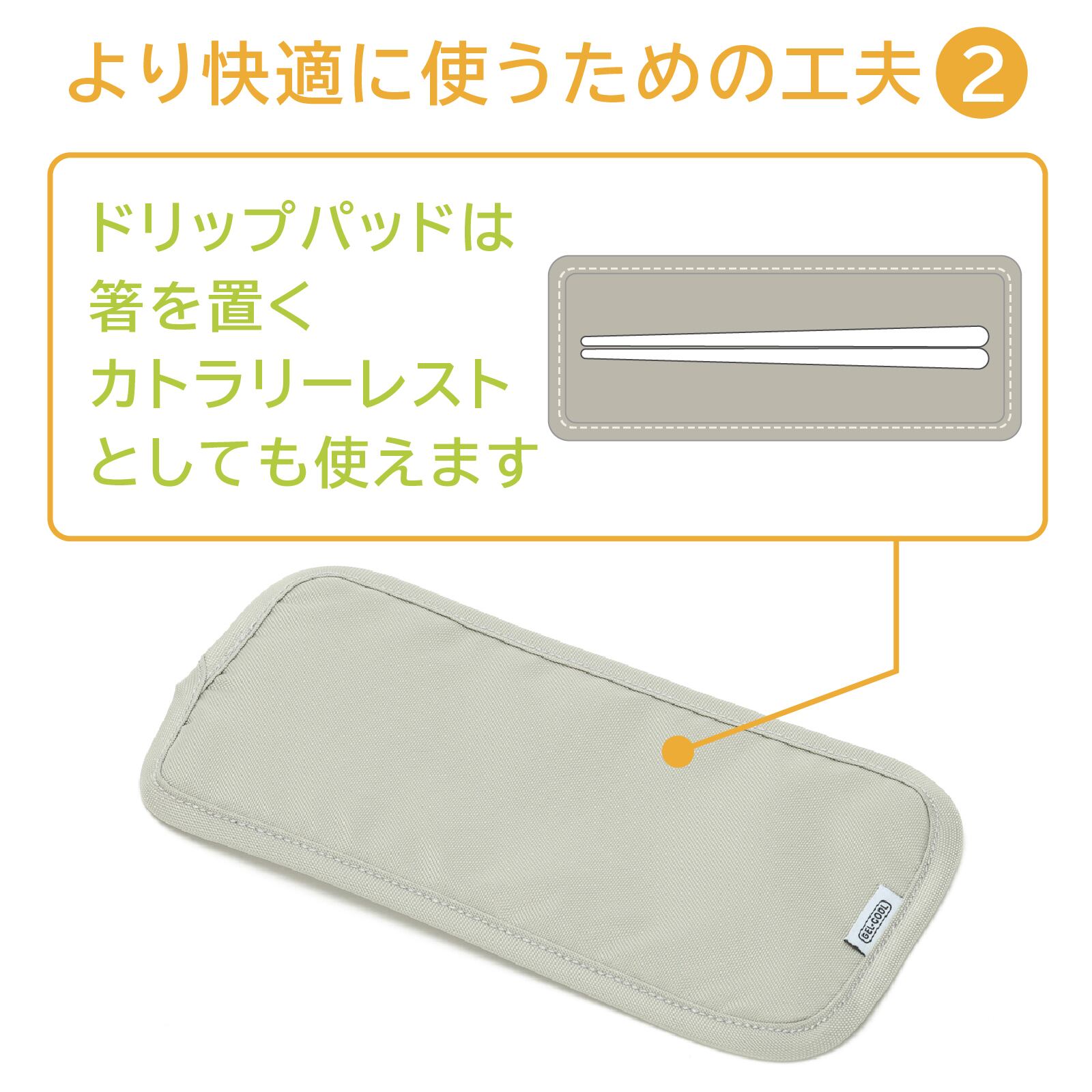 お弁当のフタが保冷剤になったGEL-COOL Wのサイズにあわせ、保冷剤で結露する水分を吸収する専用ドリップパッドが付属しています。ドリップパッドは洗濯もできるので、カトラリーレスト代わりにもなります。