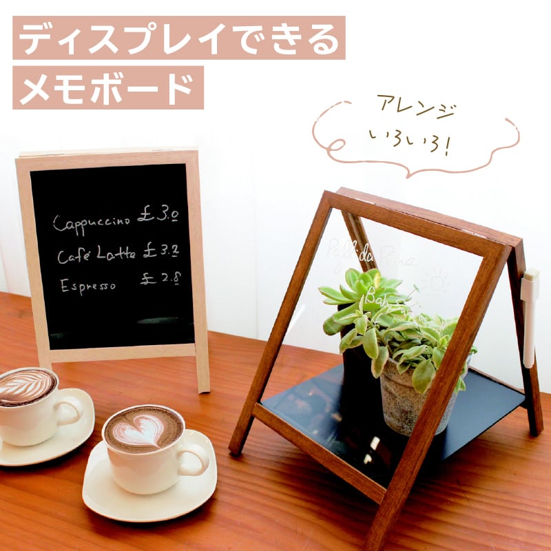 木目フレームとクリアなボードで、 お部屋のインテリア・オフィスのメッセージボード・お店のメニューにも使用できます。