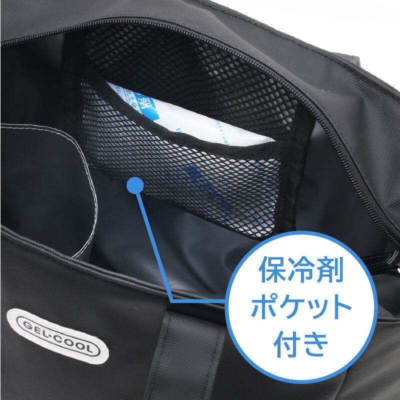内側には保冷剤を収納できるポケットも完備。保冷効果をさらに高めます。
