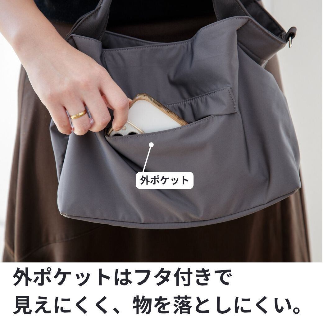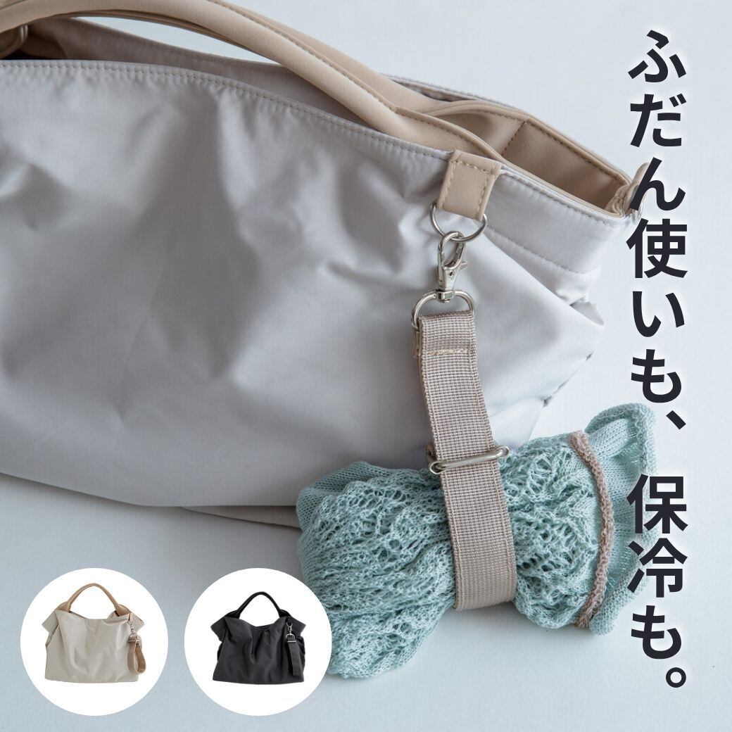 保冷ポケットがあるから、ランチバッグと日常バッグを分けずに持ち歩ける機能的なトートバッグです。保冷機能が潜んでいるなんて見た目からは感じさせないところが秀逸です。お出かけや日常使いにぴったりのサイズ感に女性らしいデザインも魅力!この夏は、外出時のお弁当や飲み物、スマホなどを冷たく保ちつつお出かけを。撥水生地で小雨も安心なほか、汚れにも強いのもうれしいところ。