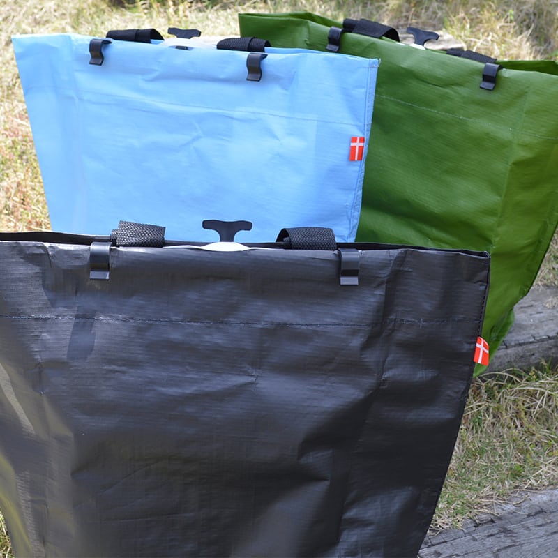自転車の荷台にかんたんに取り付け、取り外しできる自転車先進国デンマーク生まれのエコバッグです。荷台にカゴをつけたくない、でも荷物は運びたいという方。まいにちのお買い物は、自転車でという方におすすめです。