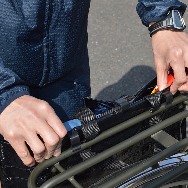 ■バッグについたフックを荷台にかけるだけ