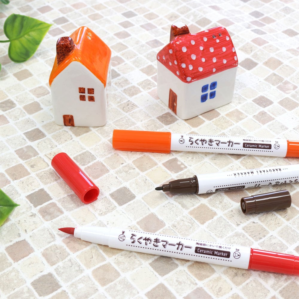 陶器やガラスに描いて、オーブンで焼くだけで絵付けができる特殊マーカーとお皿がセットになった絵付けキットです。絵付けの時の色と仕上がりの色が同じなので子供でもイメージしやすく、またマーカー型なので誰でも簡単に描くことができます。母の日や父の日などのイベントでの手作りプレゼントや、自分だけのオリジナルアイテム、保育園や幼稚園の記念品づくり、ワークショップのアイテムとしてお楽しみください。